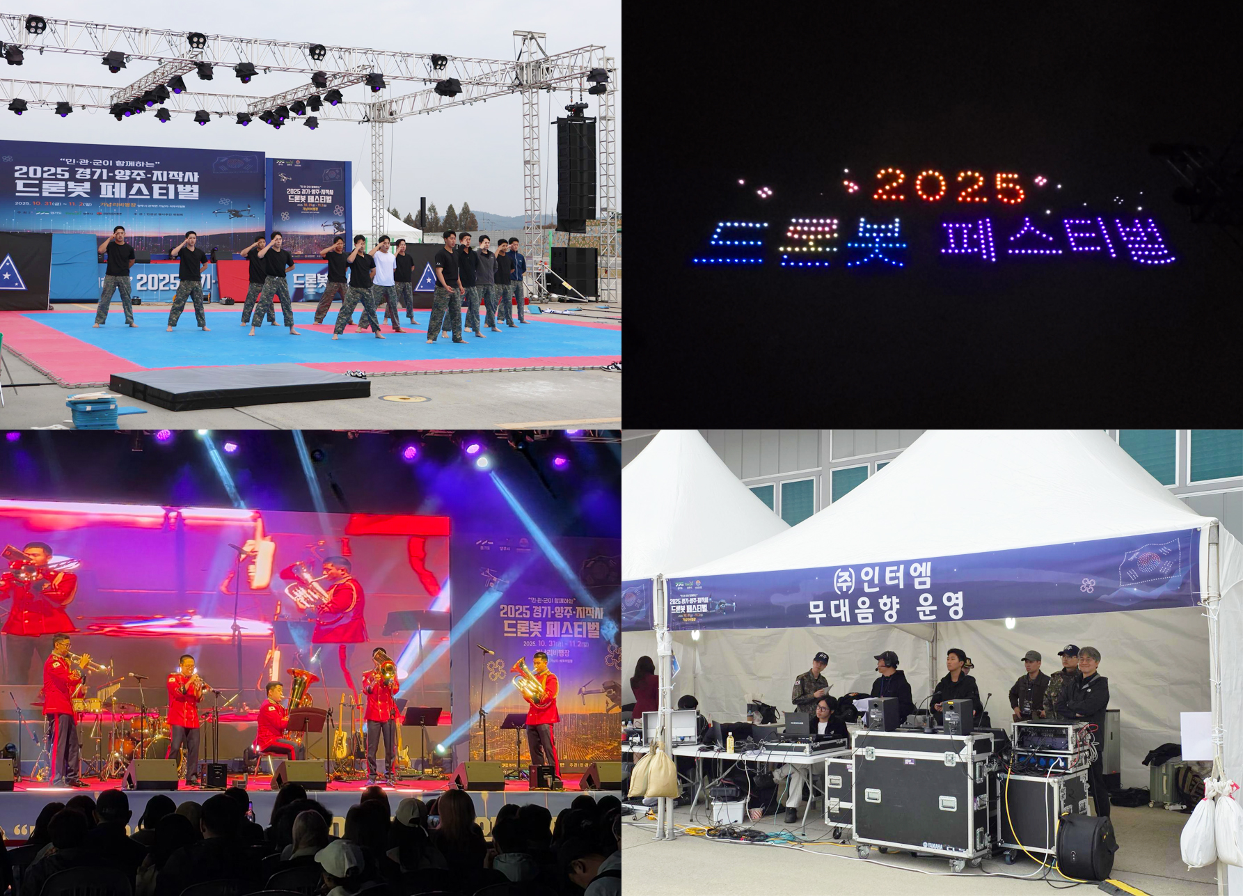 인터엠과 인터랙트는 메인 행사장과 경기장 2곳 등 총 3개 구역에서 음향 시스템을 지원했으며, 메인 행사장에서는 현장 진행까지 함께하며 드론 라이트쇼, 드론봇 경연대회, 민·군 상생음악회 등 다양한 프로그램을 생생하게 전달했습니다. 🔊